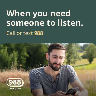 The State of Oregon has launched 988 Oregon: Connect to Hope, reminding everyone that help is available by calling or texting 988. This free, confidential service connects people to mental health and substance use support—whether you’re feeling stressed, overwhelmed, or concerned about yourself or someone else. It’s never too early to reach out.